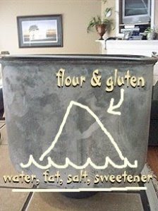 Mix in a separate bowl–3 cups (room temperature) Knight Arthur 100% Organic Whole Wheat Flour and 5T Vital Wheat Gluten (Bob’s Red Mill or Hodgsons Mill).